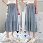 スカート レディース ロング 夏 フレアスカート ティアードスカート ふんわり Aライン 広幅 体型カバー ウェストゴム 裏地付き 無地 ボ 春
