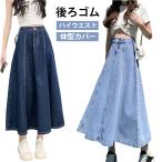 スカート Aライン デニムスカート 春夏秋冬 フレア デニム ロングスカート レディース フレアスカート ゆったり デニムスカート 体型カバー シンプ