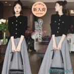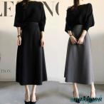 セットアップ レディース 40代 秋冬 きれいめ ワンピース 長袖ニットトップス Aラインスカート 結婚式ドレス 通勤 着痩せ オシャレ 上品