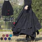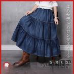 スカート デニムスカート ロング丈 マキシ Aライン ロングスカート ウエストゴム 冬 秋 レディース フレア 大きいサイズ ゆったり 着痩せ 激安