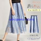 チュールスカート スカート レディース 刺繍 高級感 ウエストゴム 無地 春コーデ Aライン シンプル 細見え 体型カバー 春夏