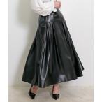 スカート フェイクレザー タックフレアロングスカート / ハイウエスト Aライン エコレザー ボリュームスカート