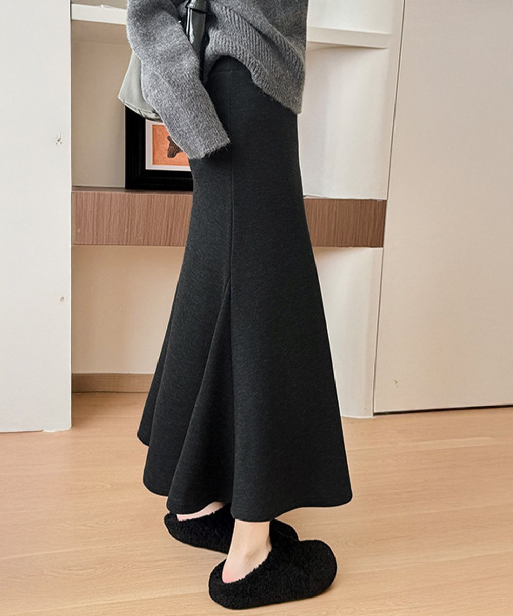 スカート 「S-XLサイズ展開/新色追加」-3kg見え!すっきりリブタイトロングスカート
