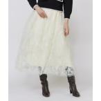 スカート 手描き花刺繍チュールスカート