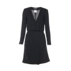 シャネル ジャケット スーツ CHANEL ブラック シルク コットン ノーカラー ツイード スカート カール・ラガーフェルド作品 40 42