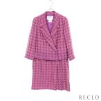 シャネル CHANEL スカートスーツ 総柄 レーヨン ウール コットン パープル レッド 01P P17319 レディース 中古