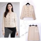 シャネル ジャケット スーツ CHANEL アイボリー ブラック トリミング ブークレ スカート グリポワ宝石ボタン 貴重 ランウェイ登場 40 42
