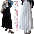 スカート ティアードスカート ロング丈 白 黒 フレア レディース ボトムス 春 夏 無地 フレアスカート ロングスカート マキシ丈スカート Aライン
