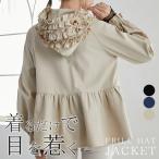 ジャケット アウター ペプラムパーカー ブルゾン スプリングコート フリルフード 裾フレア ギャザー 羽織り 大きめフード ふんわり 春秋の体温調整