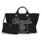 (未使用 展示品)CHANEL シャネル A66941 ドーヴィル ラージ ショッピングバッグ 2WAY チェーン ショルダー ハンドバッグ コットン レザー ブラック