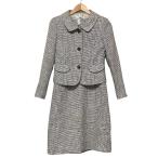 良品 courreges クレージュ ジャケット ひざ丈 ワンピース スーツ アンサンブル サイズ9/11 ホワイト ブラック レディース 古着 中古