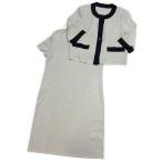 カルヴェン CARVEN Nobel ラピーヌ スーツ アンサンブル セットアップ ニット ノーカラー ジャケット ワンピース グレー 44 大きいサイズ