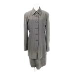 ロートレアモン ワンピースアンサンブルスーツ セットアップ 2点セット ロングジャケット ワンピース ウール混 ストライプ L グレー