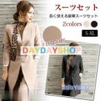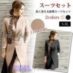 スーツ レディース おしゃれ ノーカラー ロング丈 ワンボタン 付き テーラードジャケット パンツ セットアップ