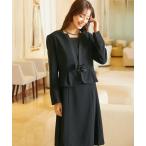 セレモニースーツ セットアップ 「喪服・礼服」ノーカラーアンサンブル(ジャケット+前開き7分袖ワンピース)(リボンブローチ付)(レギュラー)