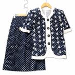 Arc-en-Ciel コットン ドット × 刺繍 ノーカラージャケット スカートスーツ セットアップ 38 ネイビー レディース