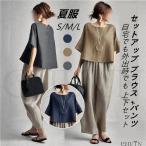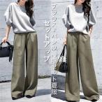 セットアップ レディース 夏 パンツスーツ 40代 ワイドパンツ カジュアル シフォン 2点セット 七分袖 服 母 おしゃれ 通勤 旅行 OL 20代 30代 50代