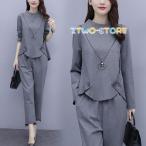 スーツパンツ レディース カジュアル 秋セットアップ 通勤 OL 30代 40代 着痩せ 体型カバー 大きいサイズ 2点セット 春秋