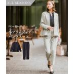 レディース スーツ パンツスーツ 洗える ドビー素材 ノーカラージャケット テーパードパンツ ニッセン s0