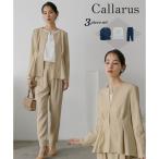 セットアップ 「Callarus」「入学式・卒業式・フォーマル」デザインブラウス付スリットデザインジャケットフレアパンツスーツ(ジャケット+ブラウス+