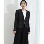 セットアップ 高身長 「フォーマル」ドビー素材パイピングノーカラージャケットワイドパンツスーツ (ジャケット+パンツ)(トールサイズ) レディース