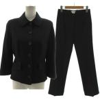セリーヌ CELINE スーツ パンツスーツ セットアップ 上下セット ジャケット ステンカラー 丸襟 パンツ ストレート ウール混 黒 38 36