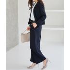 セットアップ ドビー素材セットアップパンツスーツ3点セット(ノーカラージャケット+フレア袖ブラウス+リボン付ワイドパンツ) レディース