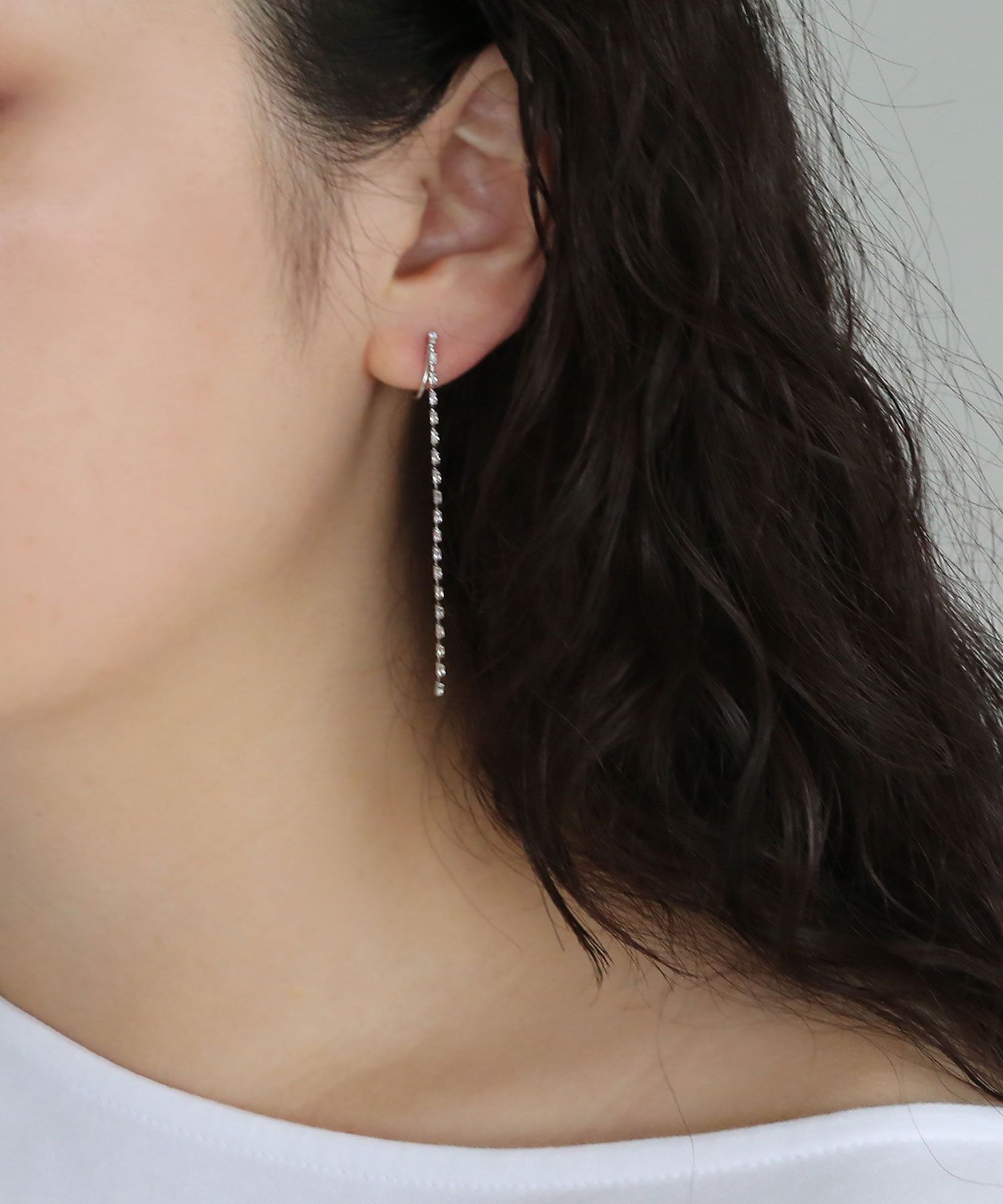 collecala(コレカラ)/ノンホール・ロングラインストーンイヤリング