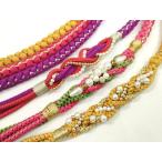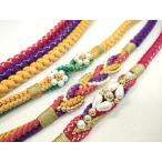 平和屋着物▼和装小物 帯締め3本セット 振袖用 飾り付き パール 花 ピンク 黄色 緋色 金糸 逸品 CABC1109ju