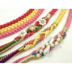 平和屋着物▼和装小物 帯締め3本セット 振袖用 飾り付き パール 花 紫 赤 草色 金糸 逸品 CABC1145ju