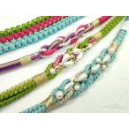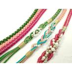 平和屋着物▼和装小物 帯締め3本セット 振袖用 飾り付き パール 珊瑚色 緑 金糸 逸品 CABC1115ju