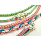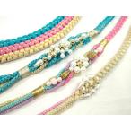 平和屋着物▼和装小物 帯締め3本セット 振袖用 飾り付き パール 花 ベージュ ピンク 水色 金糸 逸品 CABC1140ju