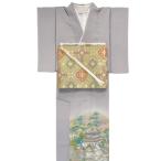 訪問着 セット 購入 渋グレー地宝尽くし松竹梅 5点セット フリー サイズ 仕立て上がり 洗える着物 訪問着 袋帯 長襦袢 正絹帯揚げ 正絹帯締め セット ポリエステル アッシュエル HL 和装 和服 着物セット 洗える訪問着 販売 七