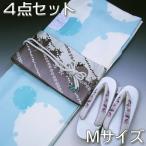 セール 着物 セット モダン カジュアル 4点セット M 水色 雪輪 きもの 半幅帯 帯締め 草履 お月見 お花見 袷 きものセット 2p