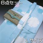 セール 着物 セット モダン カジュアル 6点 セット L 水色 雪輪 アンサンブル 名古屋帯 帯揚げ 帯締め 紅葉狩り 袷 長羽織 兎 ウサギ きものセット にゃん 5p