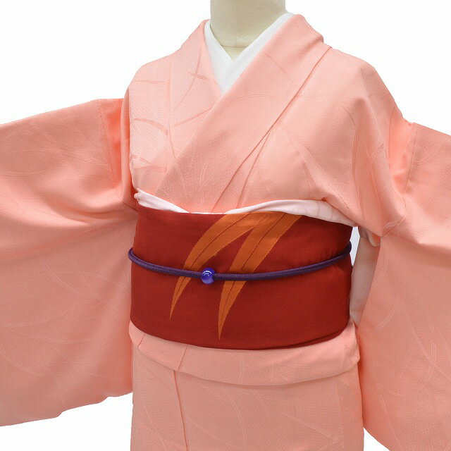【30%OFF★在庫復活】色無地 名古屋帯 セット リサイクル着物 正絹 仕立て上がり 紋付 帯締め 帯揚げ付き コーディネート 身丈 160cm 裄 64.5cm ピンク色系 良品★★★ 【中古】 【着物ひととき】 qq2370b