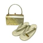 【11/1限定☆クーポンで10%OFF】草履バッグセット 留袖用 黒留袖 礼装 レディース 訪問着 正装 ゴールド 金 ベージュ 螺鈿調 ラメ シンプル 二枚芯 草履 バッグ 草履セット Lサイズ 送料無料