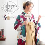 袴 セット 卒業式 女性 4点セット「二尺袖:丸花更紗に菱 灰釉色+袴:アンティークブラウン 椿+袴下帯:白 麻の葉+襦袢」卒業式 女性 (メール便不可)