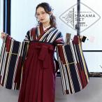袴 セット 卒業式 女性 4点セット「二尺袖:ラインカラー 黄色×薄香+袴:エンジ+袴下帯:黒 麻の葉+襦袢」(メール便不可)