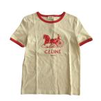 セリーヌ (CELINE) コットン リンガー Tシャツ カットソー ロゴ XS ベージュ×レッド 2X575671Q ウェア(中古)