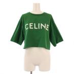 セリーヌ CELINE ロゴクロップドTシャツ 半袖 クルーネック ショート丈 プリント S 緑 グリーン 2X761501F /BB レディース