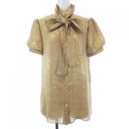 CELINE セリーヌ Vネック ネクタイ ブラウス シルク 金属繊維 ブラック ゴールド #36 2B013020D シャツ ドット リボン タイ シースルー 【中古】