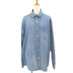 セリーヌ CELINE トリオンフ刺繍 ユニオンオーシャンウォッシュ クロップドデニムシャツ ダンガリーシャツ M ブルー /ES ■OS