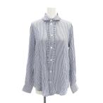 セリーヌ CELINE シャツ スタンドカラー 長袖 ストライプ コットン ブルー ホワイト フリル 2C213899C レディース 中古