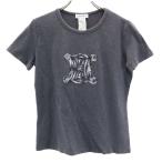 CELINE セリーヌ ポルトガル製 スパンコールロゴ 半袖 Tシャツ L チャコールグレー レディース 古着 中古