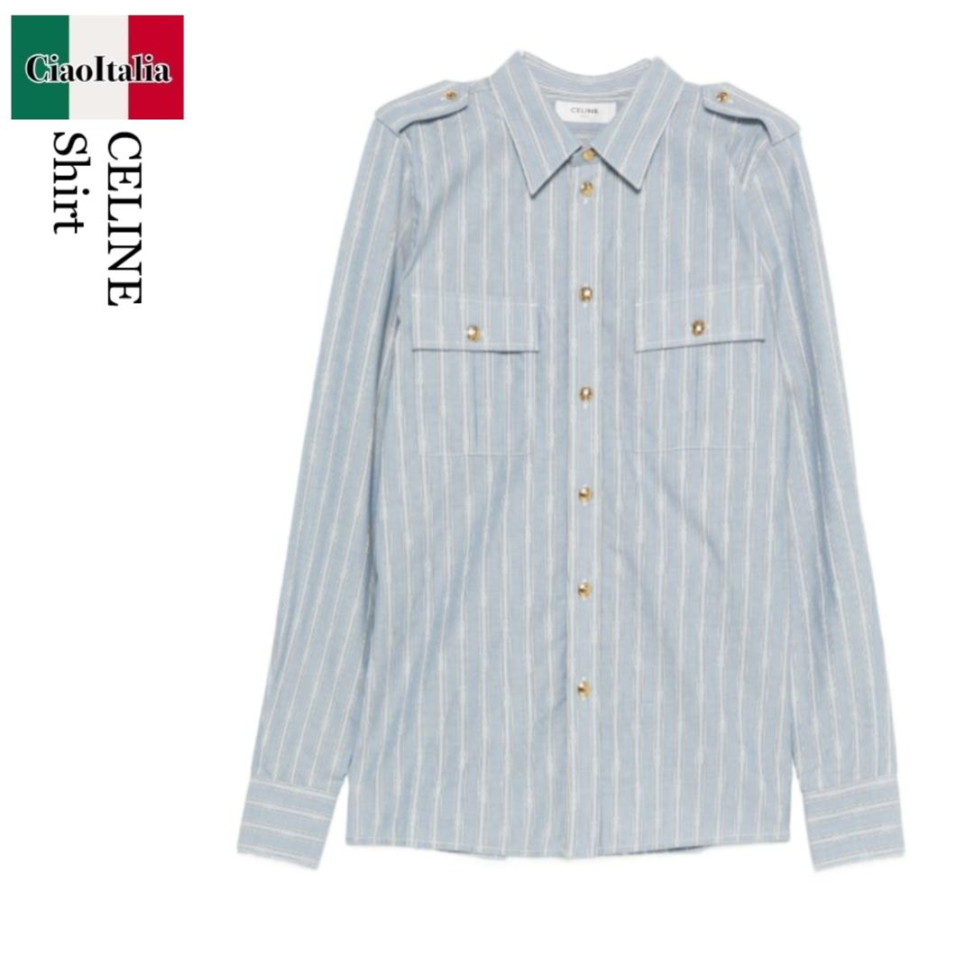 CELINE セリーヌ トリオンフ 刺繍 ストライプ シャツ 2C837085 レディース トップス ロゴ 女 シンプル 春 夏 秋 冬 プレゼント