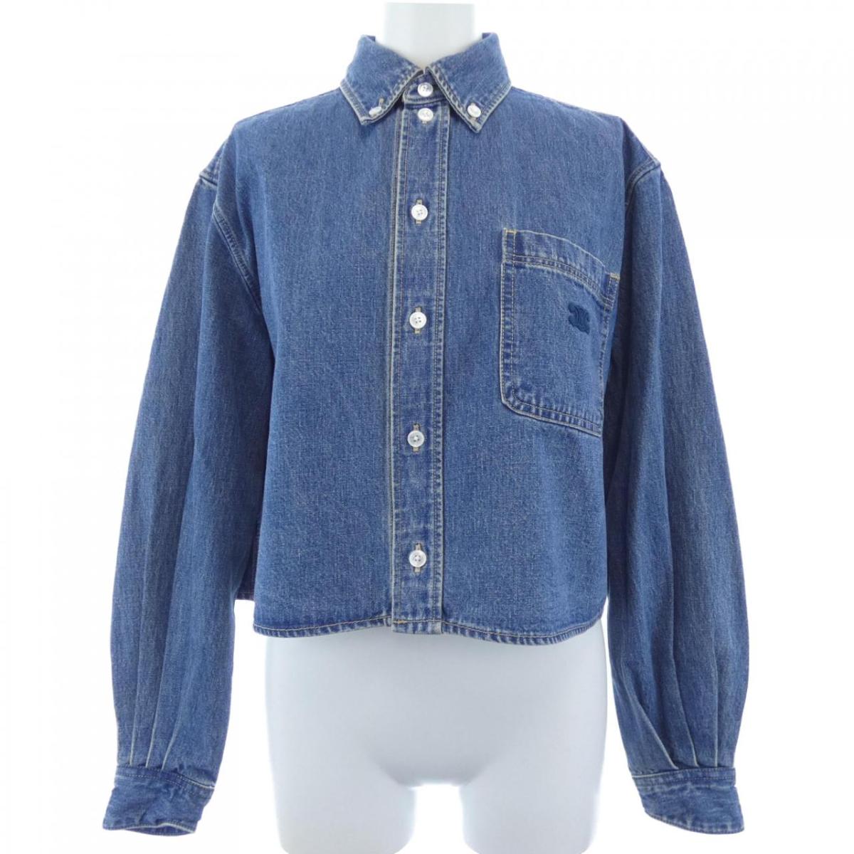 セリーヌ CELINE ユニオンオーシャンウォッシュデニム クロップドシャツ トリオンフ 2T187459N シャツ【中古】