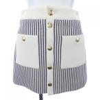 セリーヌ CELINE ボトムス ポリエステル ネイビー アイボリー スカート サイドライン ロゴ