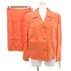 セリーヌ CELINE カラースーツ セットアップ テーラード オープンカラージャケット スカート ロゴ 金色ボタン ひざ上丈 40 オレンジ