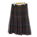 セリーヌ CELINE プリーツスカート ウール 42 ネイビー 紺 マルチカラー チェック柄 ホースビット金具 ロング丈 フランス製 /PP ■GY50